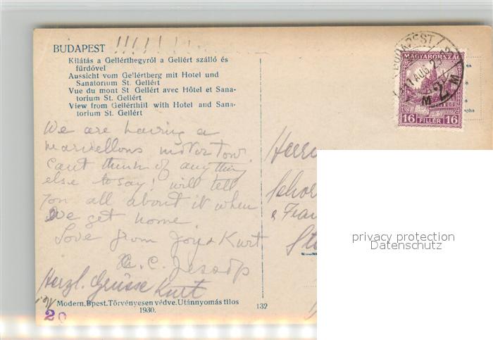 old postcard Budapest Fliegeraufnahme Blick vom Gellertberg postalisch gelaufen Erhaltung siehe scans [LiesaD40]