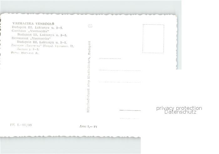 Budapest Gasthaus Vasmacska postalisch nicht gelaufen