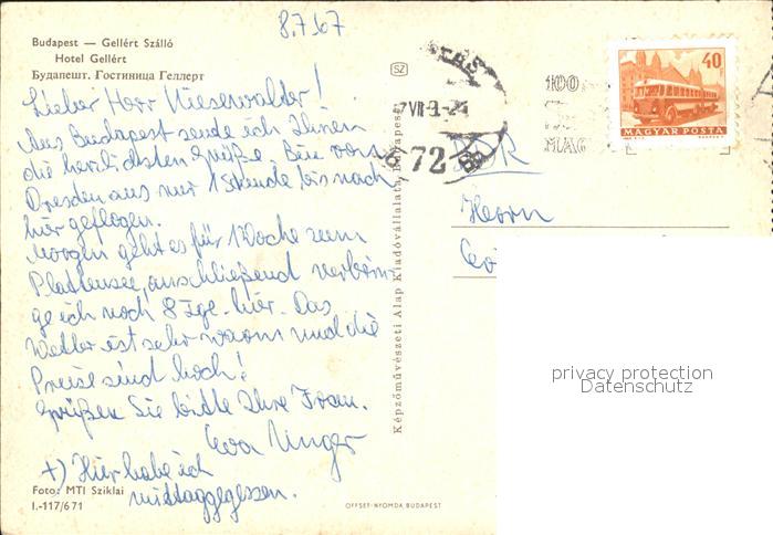 old postcard Budapest Gellert Hotel postalisch gelaufen Erhaltung siehe scans