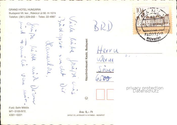 old postcard Budapest Grandhotel Hungaria postalisch gelaufen Erhaltung siehe scans