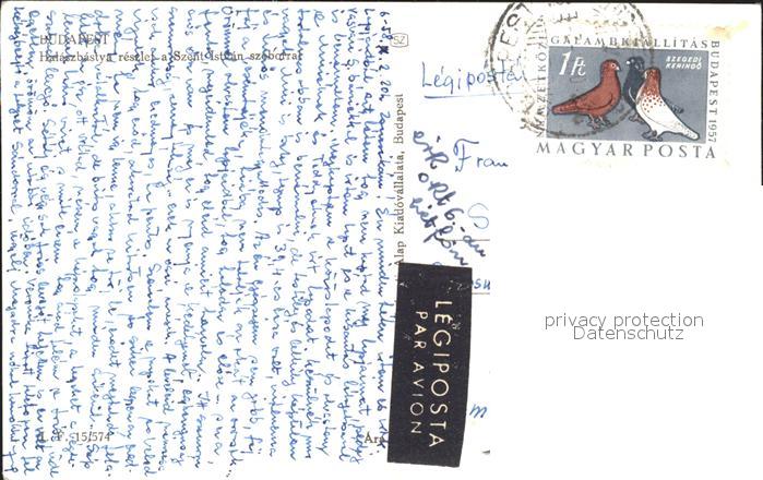 old postcard Budapest Halaszbastya reszlet a Szent Istvan szoborral postalisch gelaufen Erhaltung siehe scans