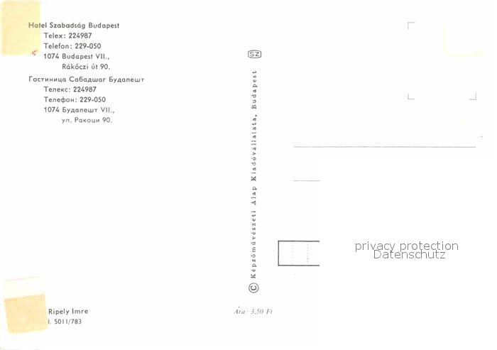 Budapest Hote Szabadsag postalisch nicht gelaufen Erhaltung siehe scans [FriedD77]
