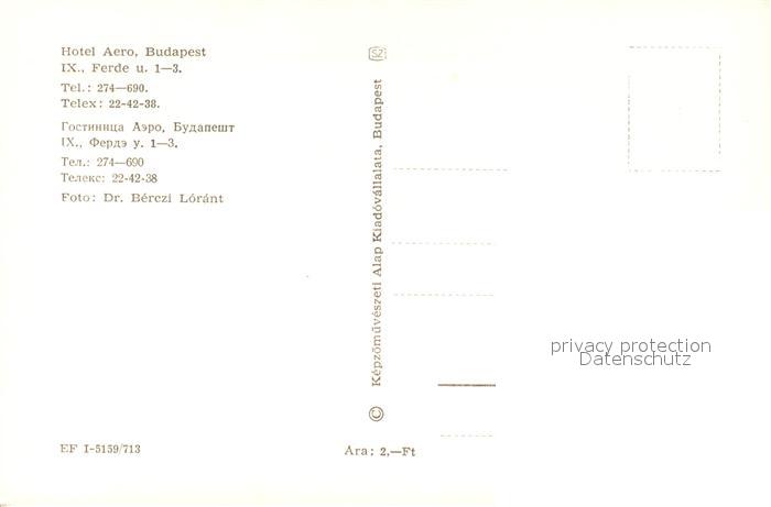 13597980 Budapest Hotel Aero postalisch nicht gelaufen Erhaltung siehe scans [WerneD78] Wern Katcode 11550