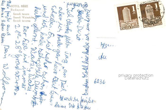 old postcard Budapest Hotel Beke Restaurant postalisch gelaufen Erhaltung siehe scans [FriedD77]