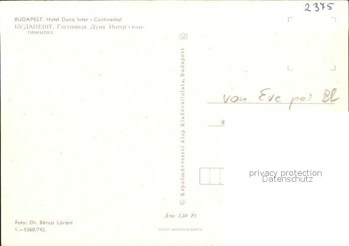 Budapest Hotel Duna Inter Continental postalisch nicht gelaufen Erhaltung siehe scans
