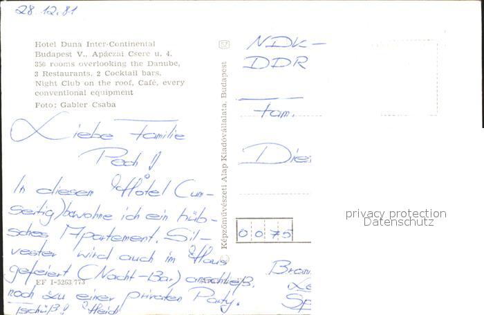 Budapest Hotel Duna Intercontinental Donauufer Dampfer postalisch nicht gelaufen Erhaltung siehe scans