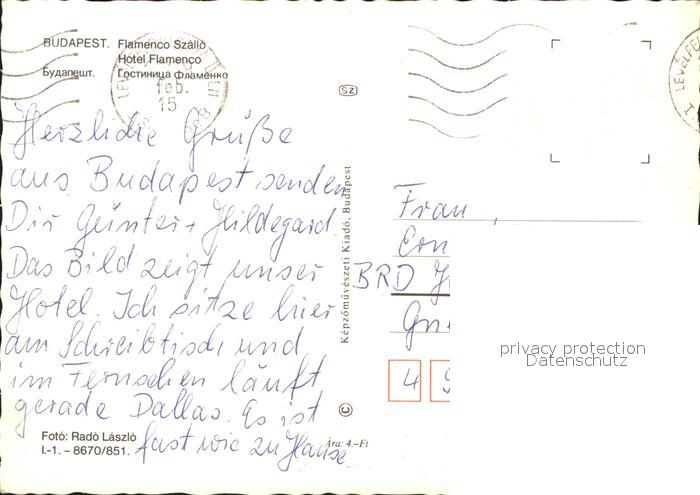 old postcard Budapest Hotel Flamenco postalisch gelaufen