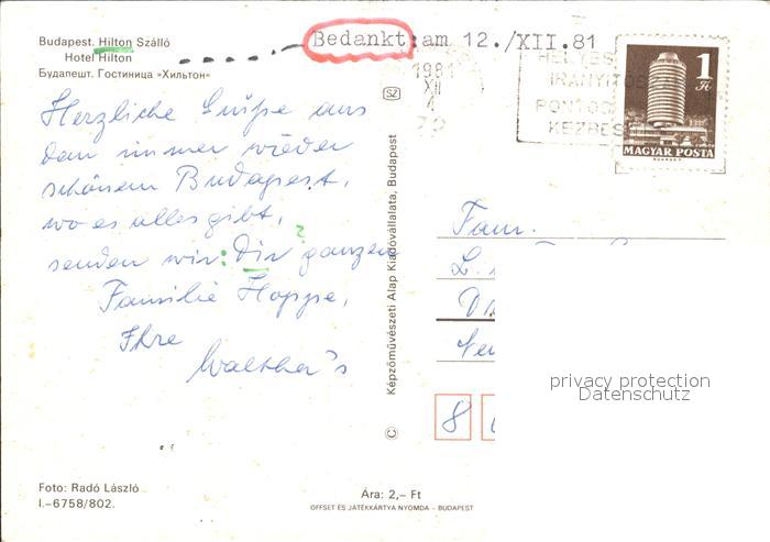 old postcard Budapest Hotel Hilton postalisch gelaufen Erhaltung siehe scans