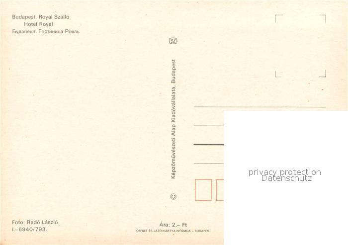 Budapest Hotel Royal postalisch nicht gelaufen Erhaltung siehe scans [WerneD78]