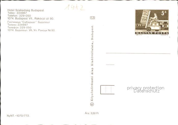 Budapest Hotel Szabadsag postalisch nicht gelaufen Erhaltung siehe scans