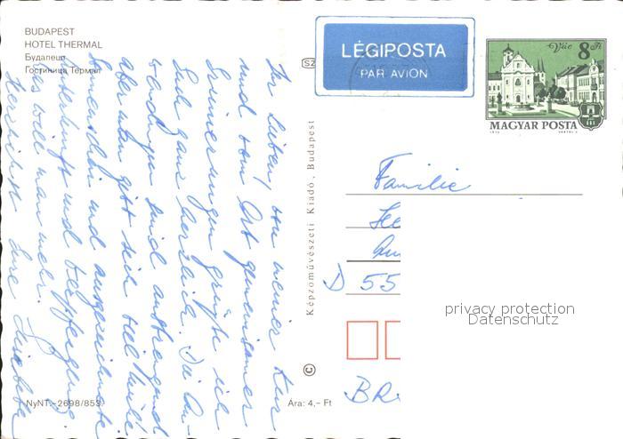 Budapest Hotel Thermal postalisch nicht gelaufen Erhaltung siehe scans