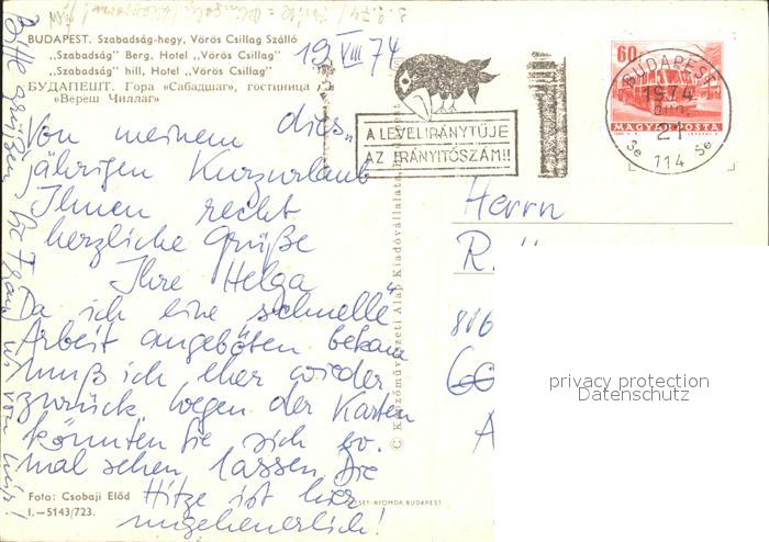 old postcard Budapest Hotel Voeroes Csillag postalisch gelaufen Erhaltung siehe scans