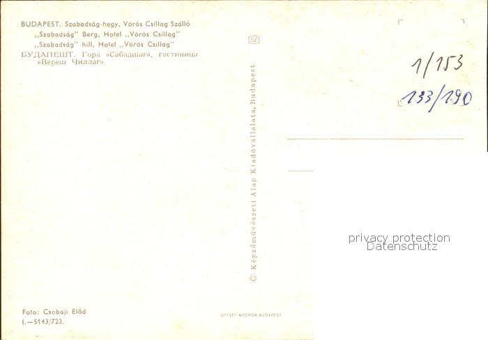 Budapest Hotel Voeroes Csillag postalisch nicht gelaufen Erhaltung siehe scans