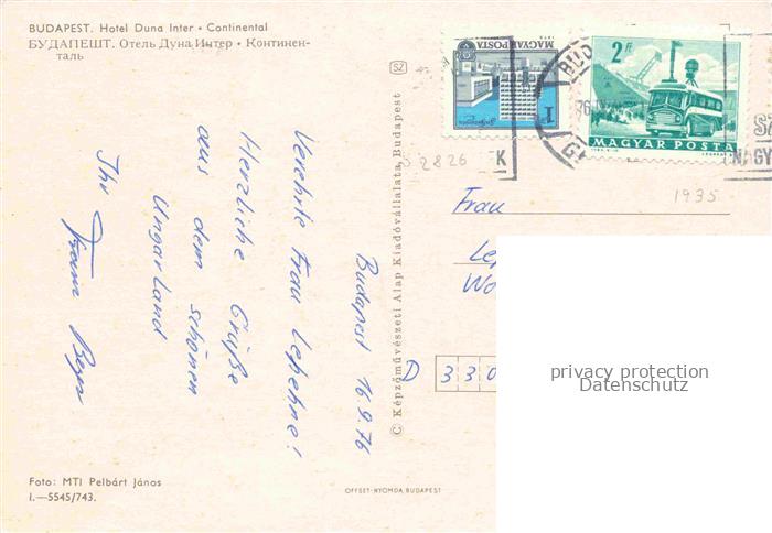 74110883 old postcard BUDAPEST HU Hotel Duna Inter Continental postalisch gelaufen Erhaltung siehe scans [WerneD78] KatCode: 11550
