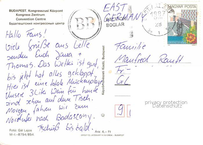 old postcard Budapest Kongress-Zentrum postalisch gelaufen Erhaltung siehe scans [LiesaD40]