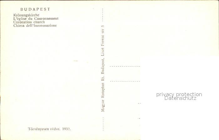 Budapest Koronazo foetemplom Kroenungskirche postalisch nicht gelaufen
