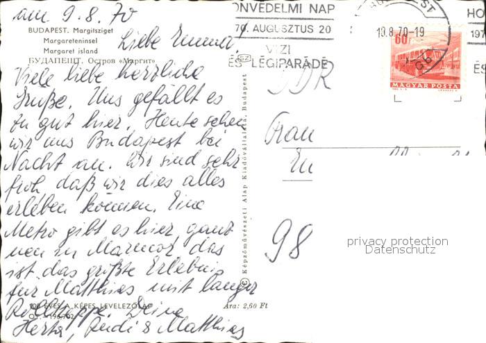 old postcard Budapest Margitsziget Margarteninsel Badestrand Grand Hotel Casino Fontaene Park postalisch gelaufen Erhaltung siehe scans