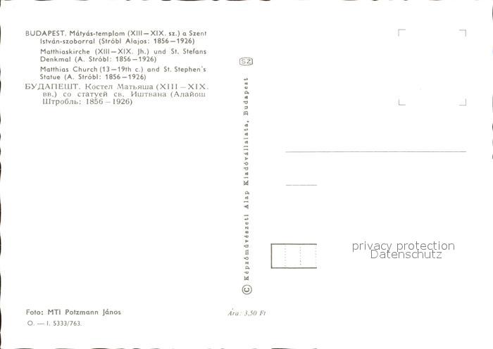 Budapest Matthias Kirche Sankt Stefans Denkmal postalisch nicht gelaufen Erhaltung siehe scans