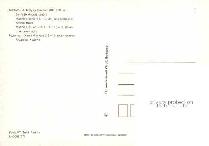 Budapest Matthiaskirche Standbild postalisch nicht gelaufen Erhaltung siehe scans [KathaD81]