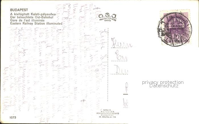old postcard Budapest Ostbahnhof bei Nacht postalisch gelaufen Erhaltung siehe scans