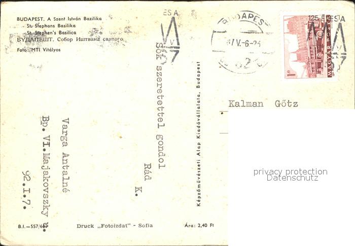 old postcard Budapest St. Stephans Basilika postalisch gelaufen Erhaltung siehe scans