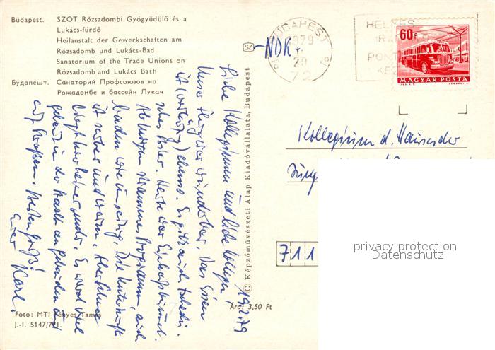 old postcard Budapest SZOT Rozsadombi Gyogyuedueloe es a Lukacs fuerdoe Sanatorium Lukacs Bad postalisch gelaufen Erhaltung siehe scans [FriedD77]