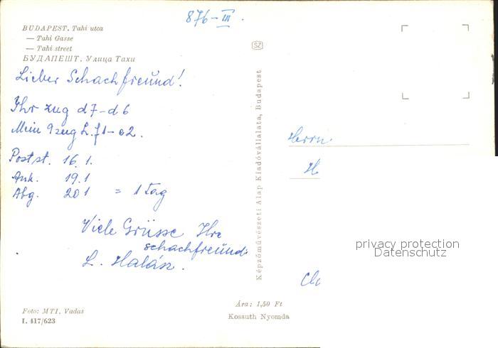 Budapest Tahi Gasse postalisch nicht gelaufen Erhaltung siehe scans