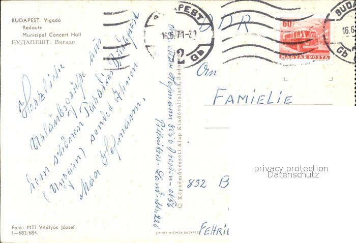 old postcard Budapest Vigado Concert-Hall postalisch gelaufen Erhaltung siehe scans