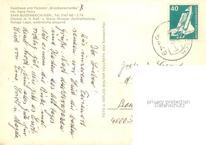 73717250 alte Postkarte Budenbach Gasthaus Pension Petry Gaststube Spazierweg postalisch gelaufen Erhaltung siehe scans [WerneD78] KatCode: 11110007140023