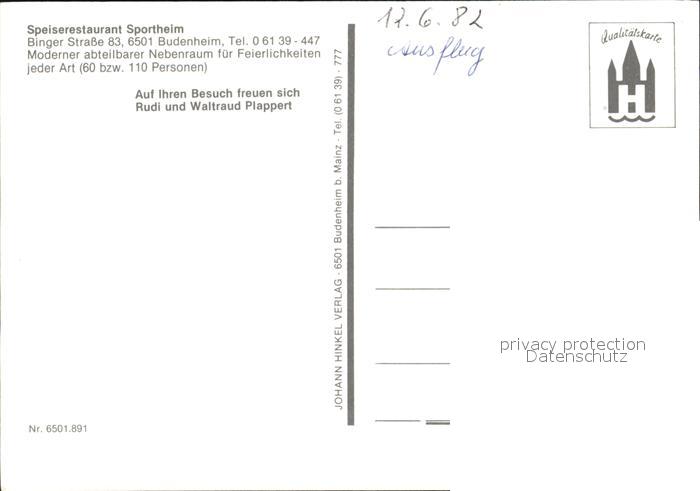 72523243 Budenheim Restaurant Sportheim postalisch nicht gelaufen Erhaltung siehe scans KatCode: 11110007339009