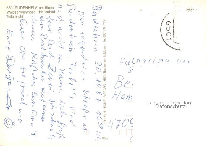 73667810 alte Postkarte Budenheim Waldschwimmbad Hallenbad Panorama postalisch gelaufen Erhaltung siehe scans [WerneD78] KatCode: 11110007339009