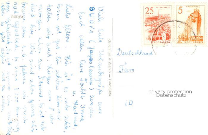 old postcard Budva Montenegro Panorama Kuestenort postalisch gelaufen Fliegeraufnahme Erhaltung siehe scans [FriedD77]