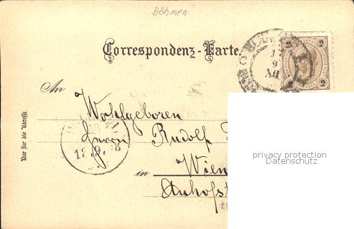 31735539 old postcard Budweis Ceske Budejowice Blick vom Walserturm Deutsches Haus Schloss Rathaus Turm postalisch gelaufen Erhaltung siehe scans KatCode: 11520