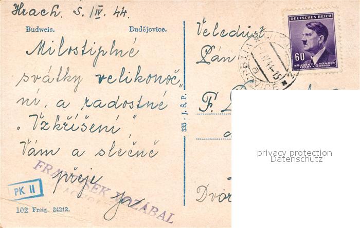 old postcard Budweis Ceske Budejowice Marktplatz Kirche postalisch gelaufen Erhaltung siehe scans [KathaD81]