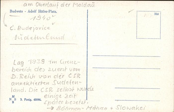 11312200 Budweis Ceske Budejowice Marktplatz mit Samsonbrunnen Rathaus und Schwarzem Turm A.H._Platz KatCode 11520
