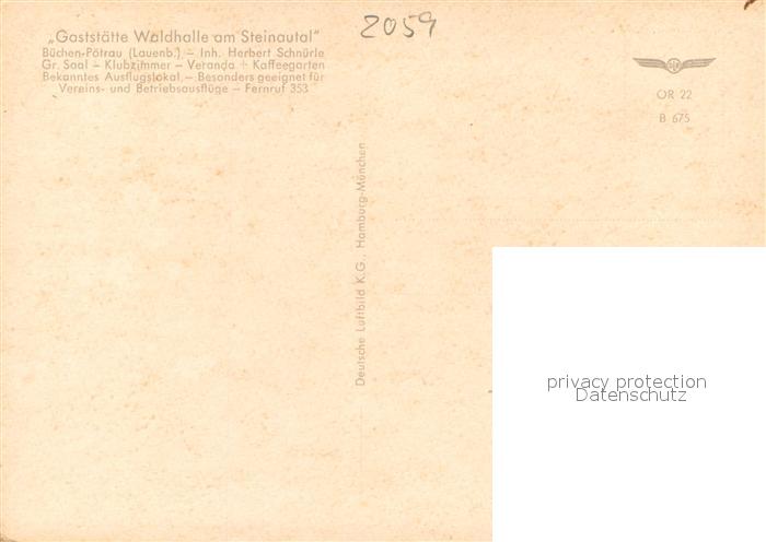 73714212 Buechen Lauenburg Gaststaette Waldhalle am Steinautal Innen- und Aussenansicht postalisch nicht gelaufen Erhaltung siehe scans [LiesaD40] KatCode: 11110001053020