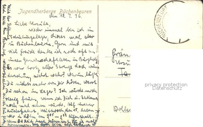 32184468 alte Postkarte Buechenbeuren Jugendherberge postalisch gelaufen Erhaltung siehe scans KatCode: 11110007140024