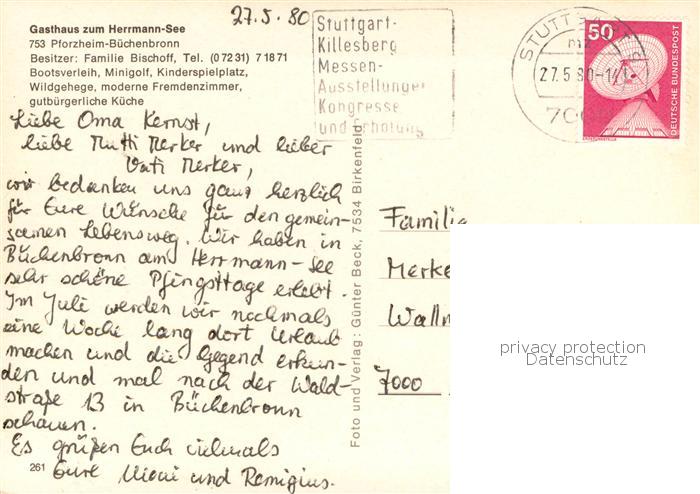 73760890 alte Postkarte Buechenbronn Pforzheim Gasthaus zum Herrmann See postalisch gelaufen Erhaltung siehe scans [WerneD78] KatCode: 11110008231000