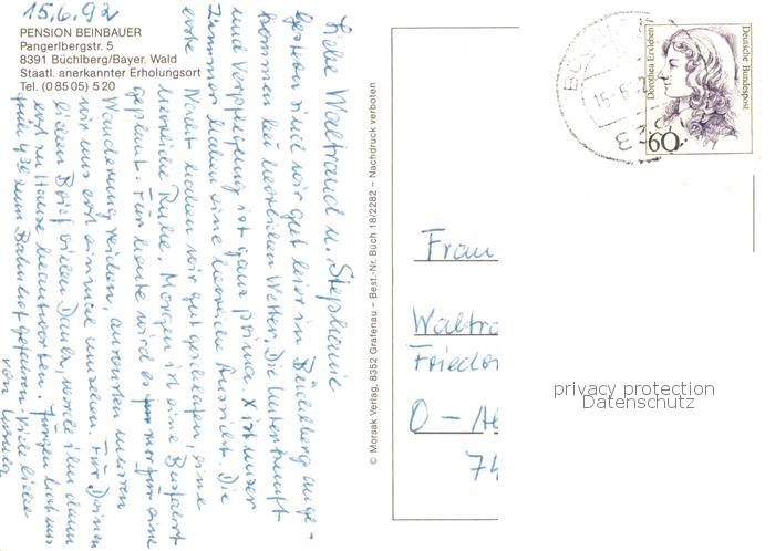 73845248 alte Postkarte Buechlberg Pension Beinbauer Gaststube postalisch gelaufen Erhaltung siehe scans [WerneD78] KatCode: 11110009275119