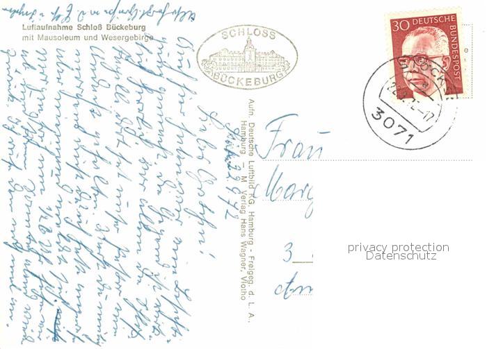 72784697 alte Postkarte Bueckeburg Fliegeraufnahme Schloss mit Mausoleum und Wesergebirge postalisch gelaufen Erhaltung siehe scans [LiesaD40] KatCode: 11110003257009