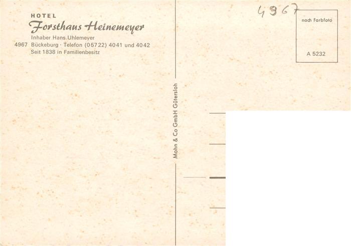 73912815 Bueckeburg Hotel Forsthaus Heinemeyer postalisch nicht gelaufen Erhaltung siehe scans [WerneD78] KatCode: 11110003257009