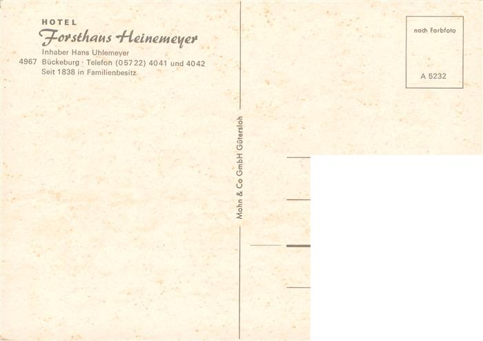 73943804 Bueckeburg Hotel Forsthaus Heinemeyer postalisch nicht gelaufen Erhaltung siehe scans [WerneD78] KatCode: 11110003257009