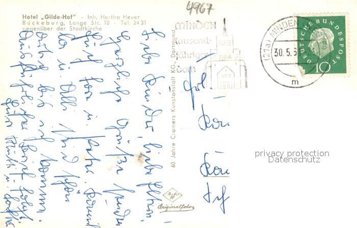 73693989 alte Postkarte Bueckeburg Hotel Gilde Hof Schloss Stadtkirche Mausoleum Gastraeume postalisch gelaufen Erhaltung siehe scans [WerneD78] KatCode: 11110003257009