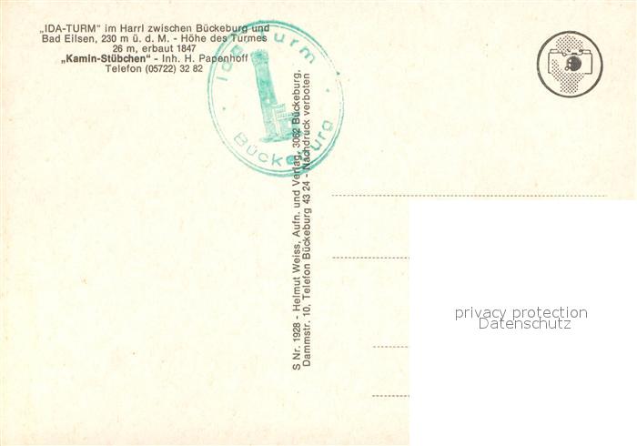 72989529 Bueckeburg Ida Turm im Harrl Aussichtsturm Kamin Stuebchen postalisch nicht gelaufen Erhaltung siehe scans [FriedD77] KatCode: 11110003257009