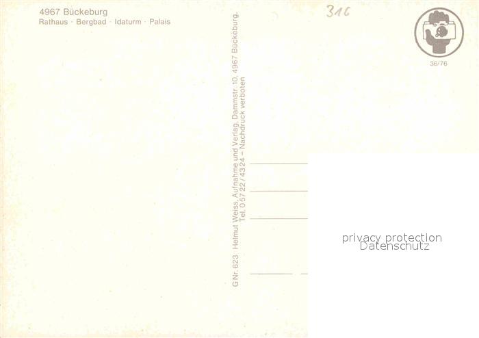 72663583 Bueckeburg Rathaus Bergbad Idaturm Palais postalisch nicht gelaufen Erhaltung siehe scans [FriedD77] KatCode: 11110003257009