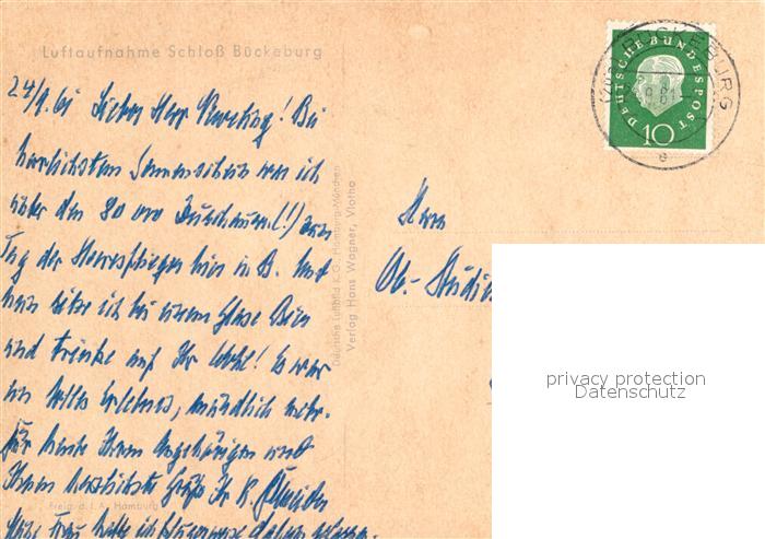 73018866 alte Postkarte Bueckeburg Schloss Bueckeburg Fliegeraufnahme postalisch gelaufen Erhaltung siehe scans [NatalD47] KatCode: 11110003257009
