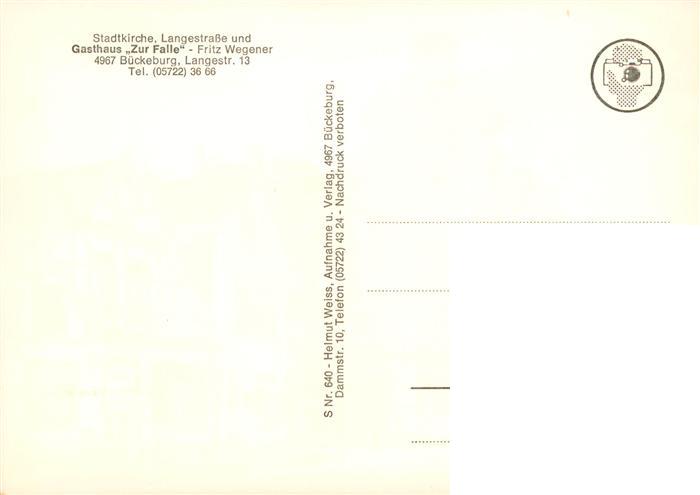 73879969 Bueckeburg Stadtkirche Langestrasse und Gasthaus Zur Falle postalisch nicht gelaufen Erhaltung siehe scans [WerneD78] KatCode: 11110003257009