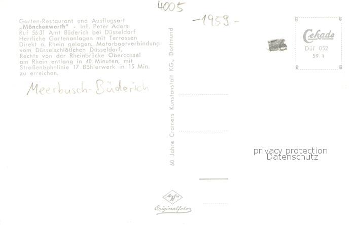 73688672 Buederich Duesseldorf Gartenrestaurant Moenchenwerth Gartenrestaurant Moenchenwerth Fliegeraufnahme Details postalisch nicht gelaufen Erhaltung siehe scans [WerneD78] KatCode: 11110005111000