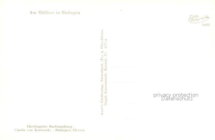 73153993 Buedingen Hessen Am Muehltor Flusspartie postalisch nicht gelaufen Erhaltung siehe scans [LiesaD40] KatCode: 11110006440004