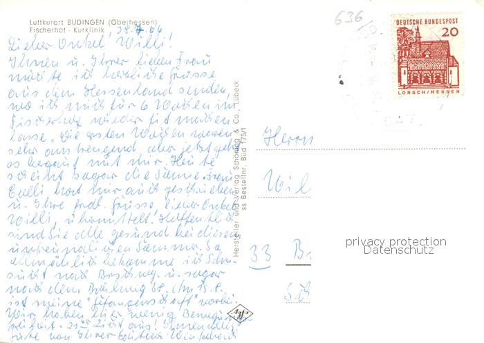72952888 alte Postkarte Buedingen Hessen Fischerhof Kurklinik Luftkurort postalisch gelaufen Erhaltung siehe scans [FriedD77] KatCode: 11110006440004
